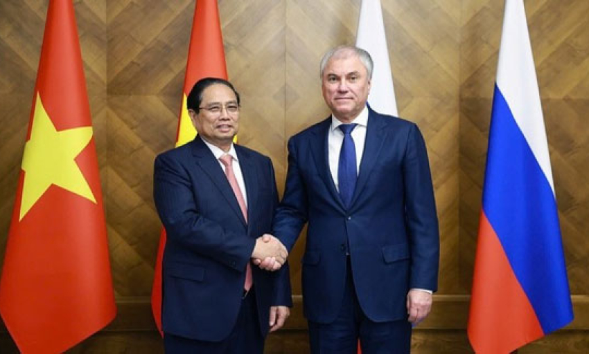 Thủ tướng Chính phủ Phạm Minh Chính gặp Chủ tịch Duma Quốc gia Nga Vyacheslav Volodin